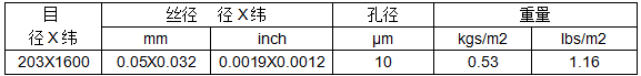 203x1600目密纹斜纹编织不锈钢网,采用0.05x0.032mm线径,通过密纹斜纹编织工艺,编织203x1600目网孔,可实现10μm的液体、气体精细过滤。这种网丝径与网孔的配比较合理,因此编织结构非常牢固。整个编织历经13道工序,使网面平整度较好。