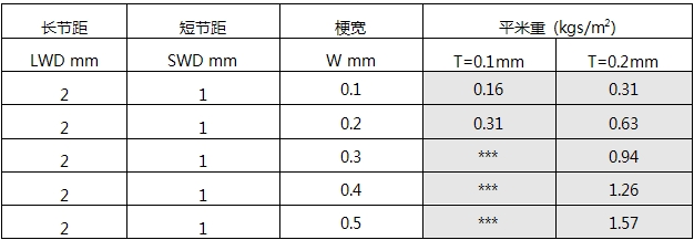 u 梗宽(W):钢板网菱形孔的边梗宽就是制作一根丝梗所用金属板的长度。
