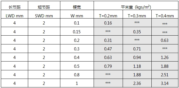 u 梗宽(W):钢板网菱形孔的边梗宽就是制作一根丝梗所用金属板的长度。