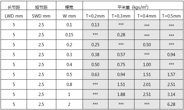 5x2.5mm微孔钢板网是由0.2-0.5mm板厚的金属板材经过钢板网冲剪机加工处理后,拉伸而成的具有5x2.5mm微型网眼的菱形钢板网。网孔小且均匀,网面平整,多用于耳机网罩,高档音箱网罩,手机喇叭网,电池集流网等对强度要求严格的过滤设备。