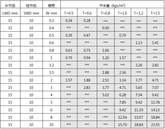 15x10mm网孔轻型钢板网是由0.5-1.5mm板厚的金属板材经过钢板网冲剪机加工处理后,拉伸而成的具有15x10mm网眼的菱形钢板网。具有重量轻,网孔小,板厚薄,轻便耐用等特点。多用于汽车隔栅(汽车中网),过滤滤芯,高档音箱网罩,工艺装饰,儿童座椅、筐、篮,办公室用品,屋顶用网。