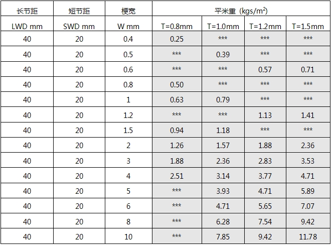 u 梗宽(W):钢板网菱形孔的边梗宽就是制作一根丝梗所用金属板的长度。