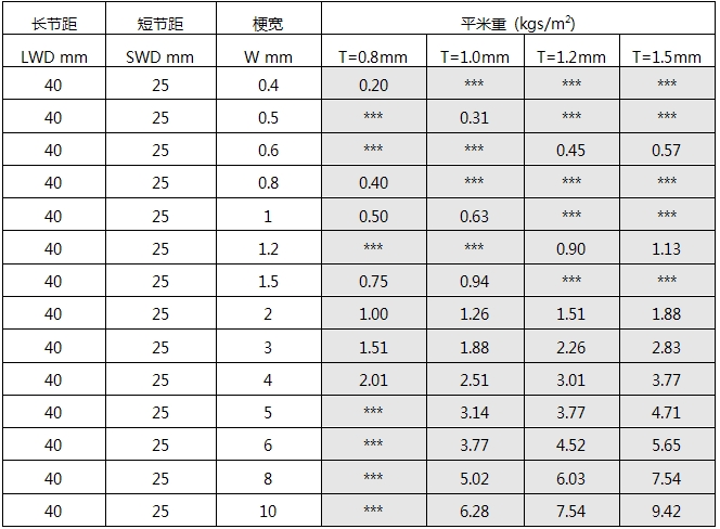 u 梗宽(W):钢板网菱形孔的边梗宽就是制作一根丝梗所用金属板的长度。