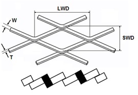 u 梗宽(W):钢板网菱形孔的边梗宽就是制作一根丝梗所用金属板的长度。