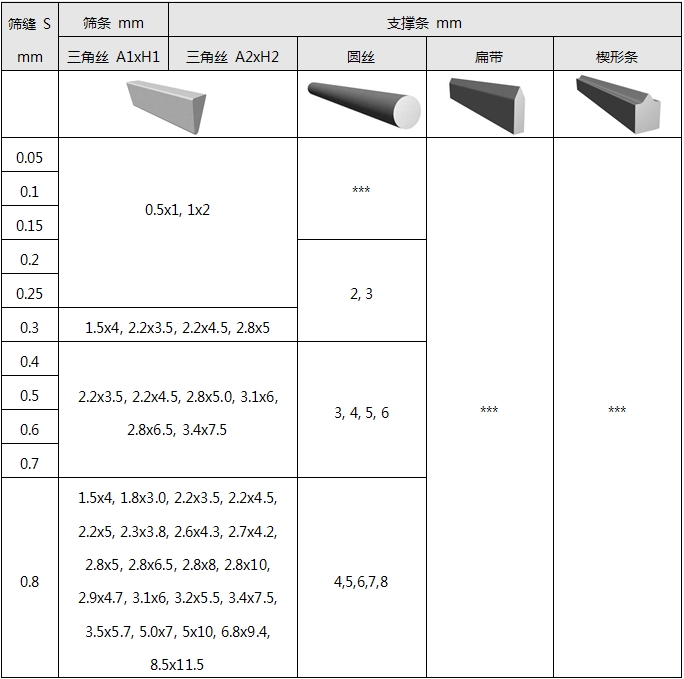 筛条:常规为三角丝