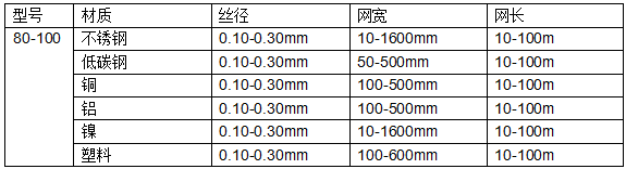 1. 型号80-100,即100mm宽度的丝网上有80个眼孔