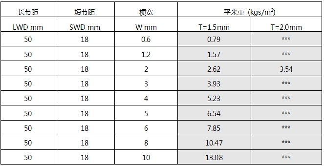 u 梗宽(W):钢板网菱形孔的边梗宽就是制作一根丝梗所用金属板的长度。