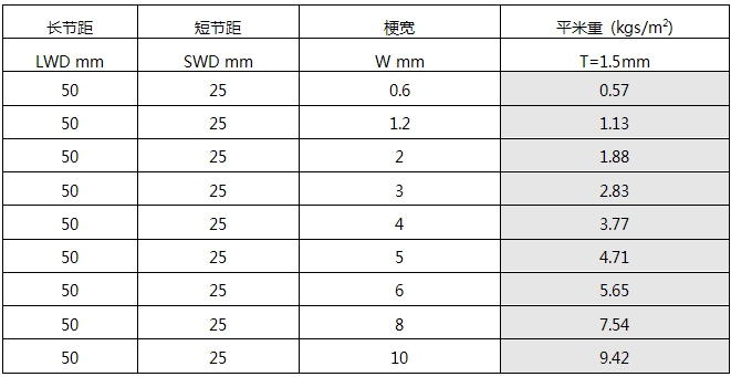 u 梗宽(W):钢板网菱形孔的边梗宽就是制作一根丝梗所用金属板的长度。