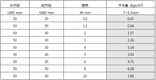 u 梗宽(W):钢板网菱形孔的边梗宽就是制作一根丝梗所用金属板的长度。