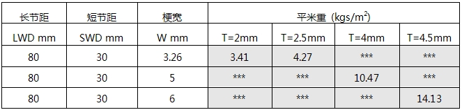 u 梗宽(W):钢板网菱形孔的边梗宽就是制作一根丝梗所用金属板的长度。